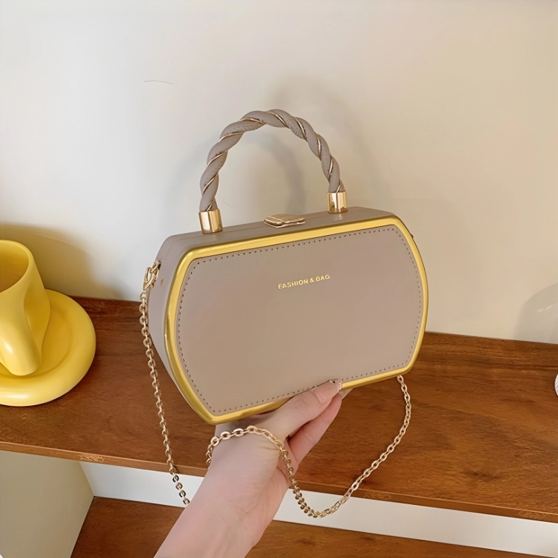 Twisted top handle ব্যাগটিকে বাড়তি charm এবং luxury appeal দেয়, আর long golden chain strap shoulder বা crossbody—দুইভাবেই ব্যবহার করা যায়। lightweight material দীর্ঘসময় ব্যবহারেও কোনো discomfort তৈরি করে না।