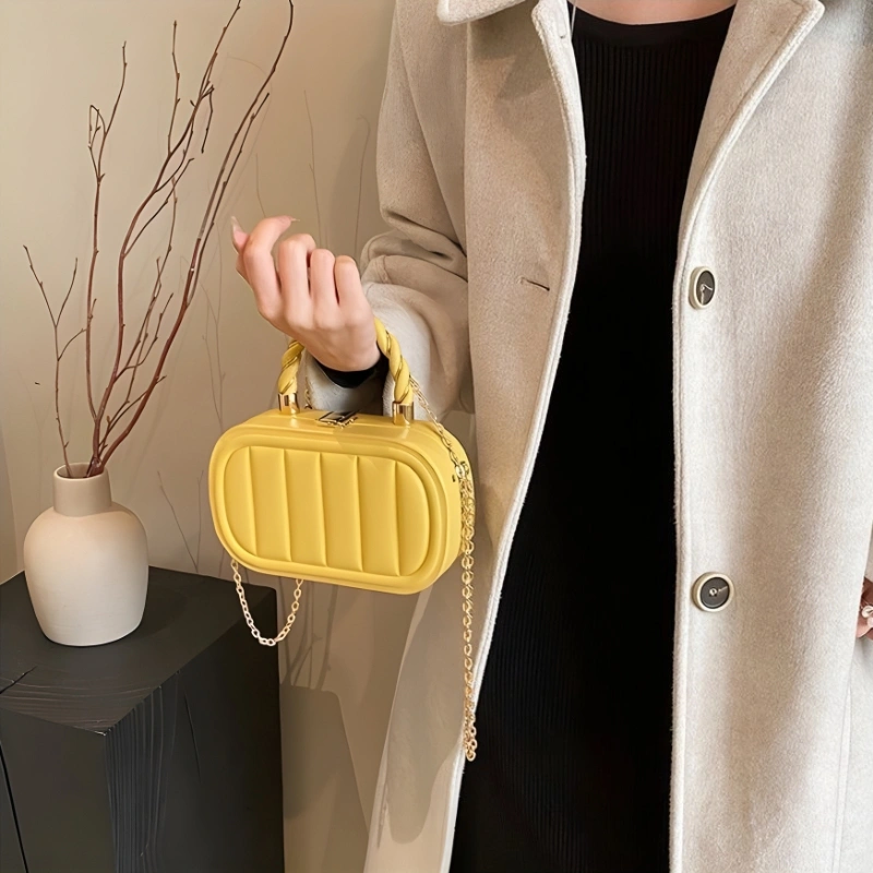 - Strap Type: Twisted top handle + detachable gold chain strap
